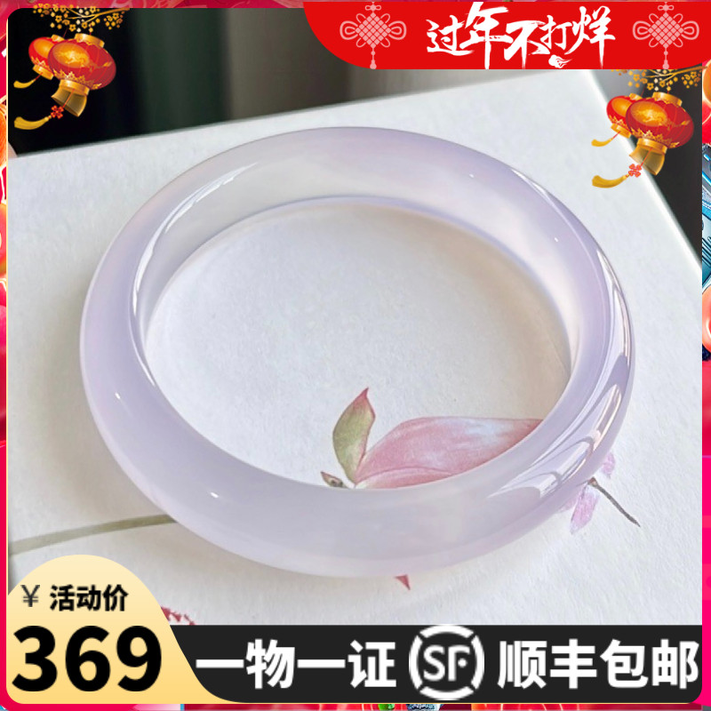 天然玛瑙手镯女款冰飘紫冰种玉镯子紫罗兰高冰透淡紫色玉髓非翡翠