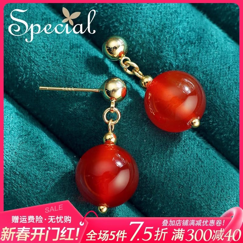 SPECIAL玛瑙耳钉耳环耳饰女初春2024新款本命年轻奢小众设计感
