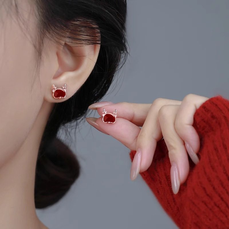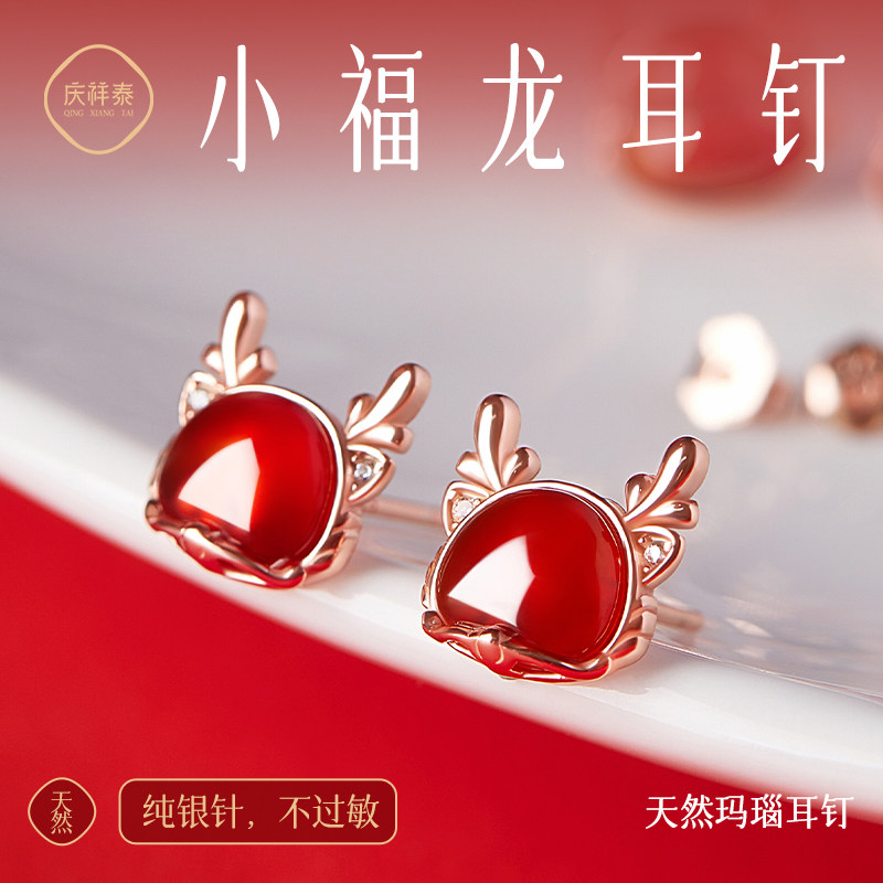 925纯银生肖龙耳钉女玛瑙本命年耳环新年爆款红色送女友礼物饰品