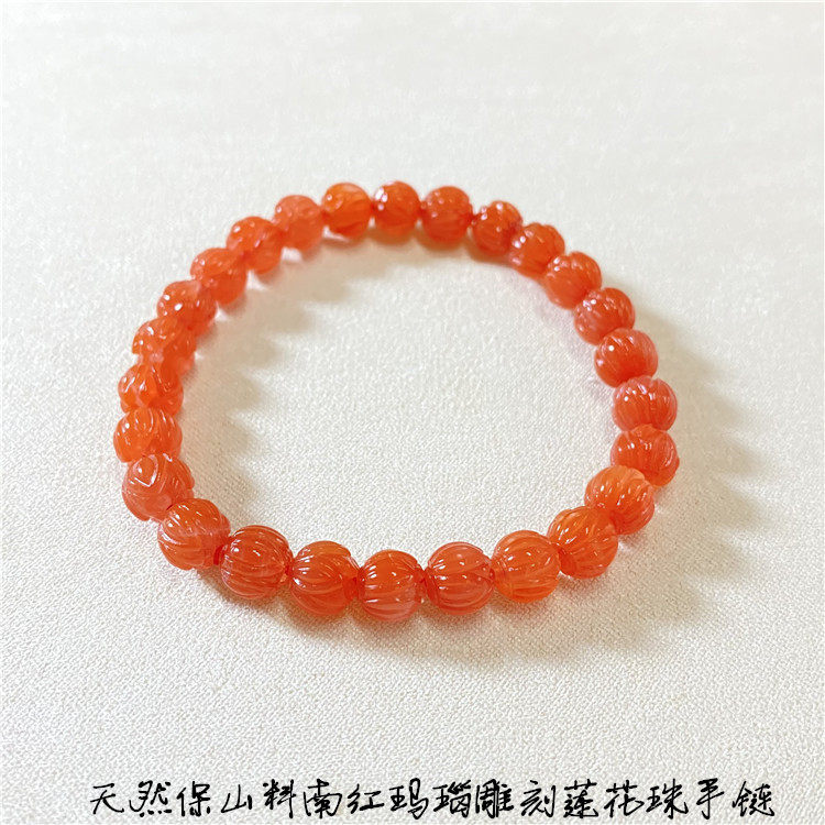 精品天然保山料南红玛瑙雕刻莲花珠手链工艺精致女款南红玛瑙水晶