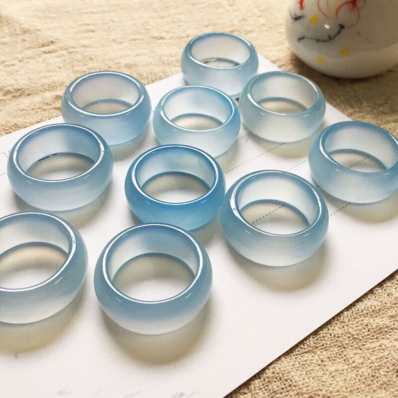 纯天然冰种玛瑙戒指海蓝宝扳指戒指指环男士扳指内径20mm宽9mm