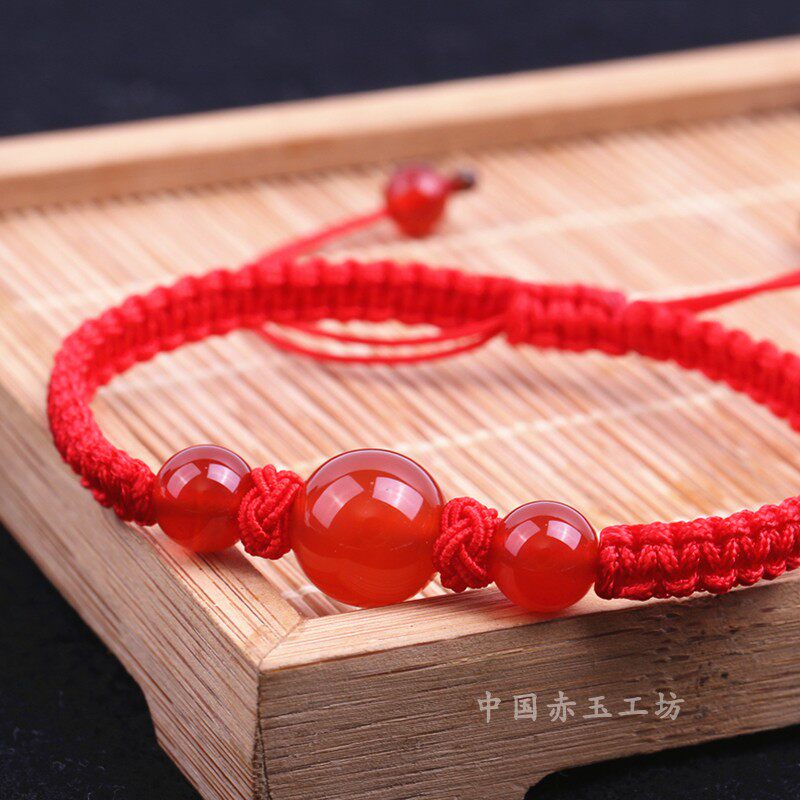 转运珠手链男女同款玛瑙红色鸿福齐天编织红绳黑绳手绳简约手串