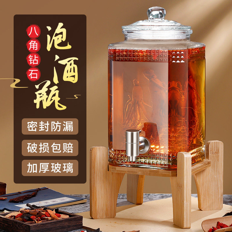 居元素泡酒专用酒瓶人参泡酒玻璃瓶加厚带龙头家用高档密封泡酒罐