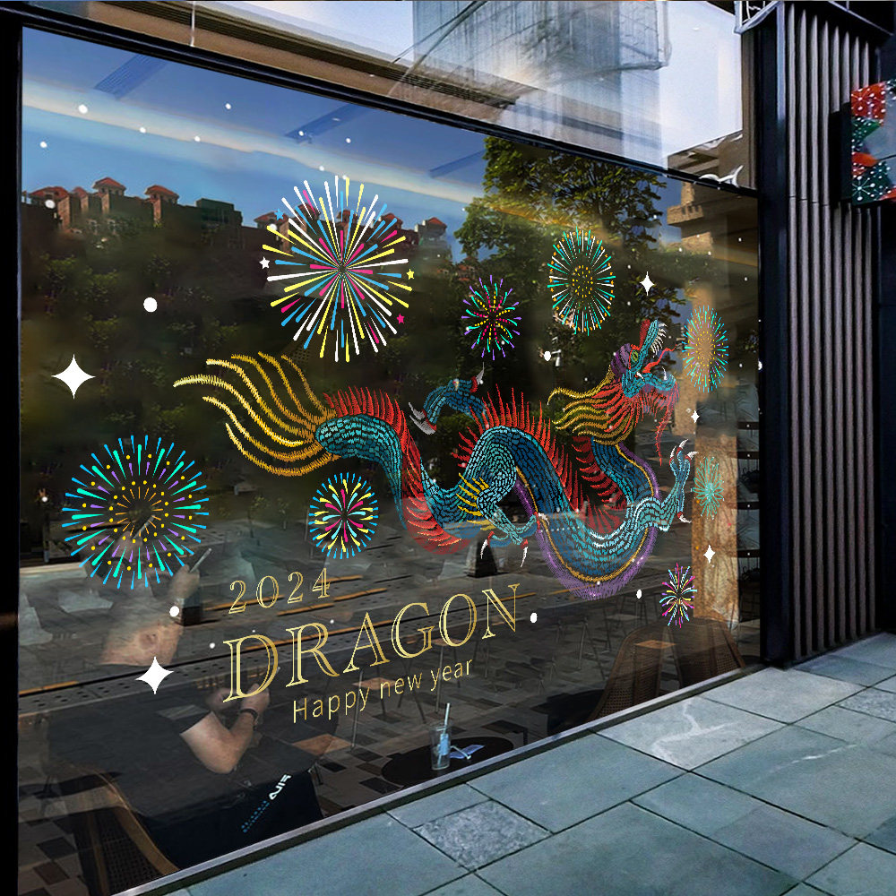 2024龙年新年春节橱窗玻璃门贴纸装饰贴画店铺过年布置静电贴窗贴