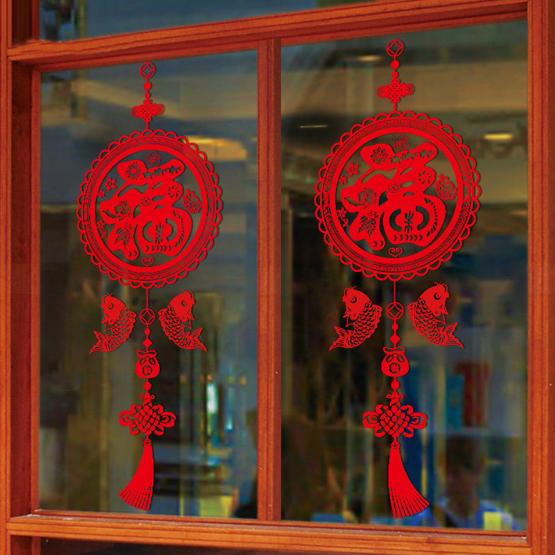 福字鲤鱼新年新春玻璃门贴纸静电装饰橱窗贴画中国风节日气氛布置