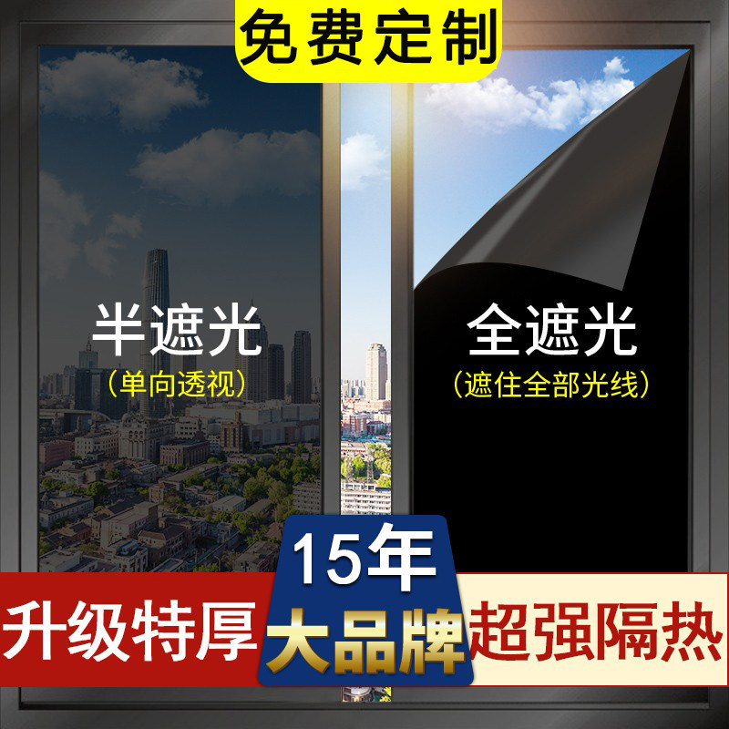 遮光贴纸不透光全遮光玻璃贴纸防光窗贴卧室窗户遮阳贴膜挡光神器
