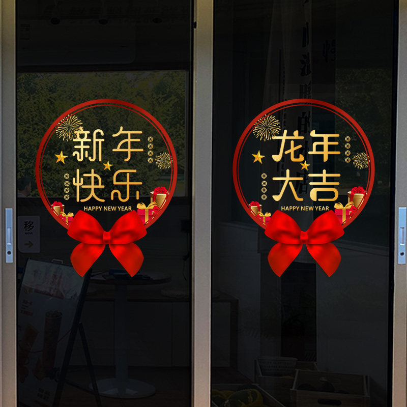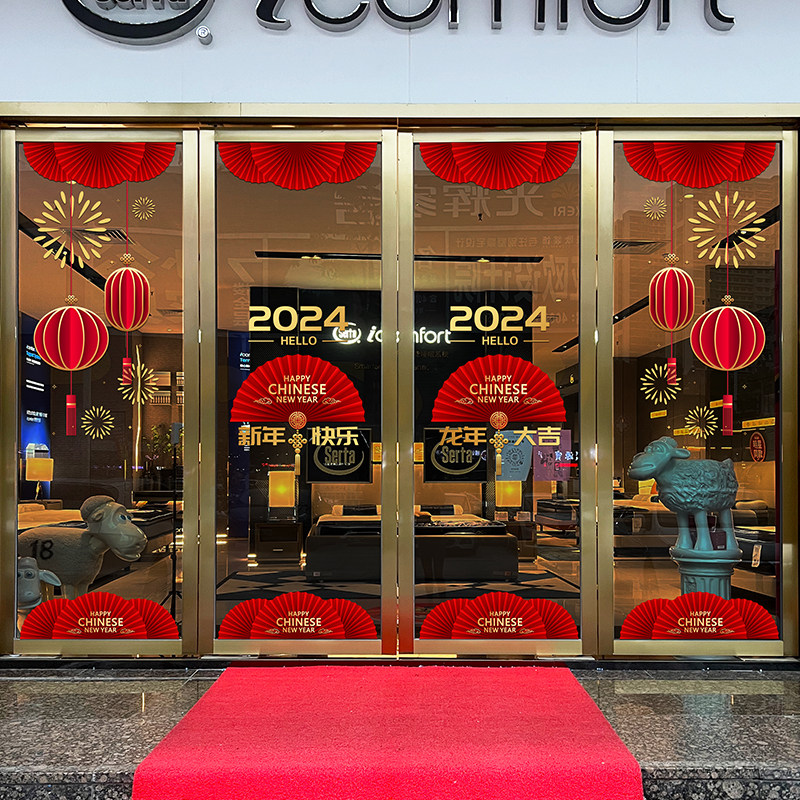 2024新春店商铺玻璃门橱窗贴纸服装店4S店售楼部节日氛围布置贴画