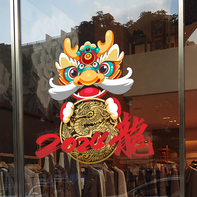 2024龙年春节过年玻璃贴纸橱窗装饰布置龙头新年窗花静电贴窗贴画
