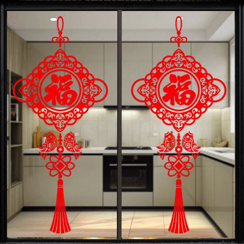 新年玻璃门橱窗春节日气氛布置装饰贴画静电贴纸新古典风红色窗花