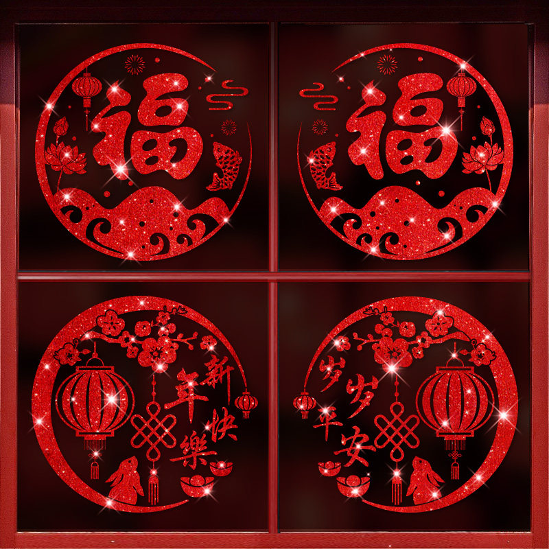 窗花玻璃贴2024龙年新款门贴纸新年福字装饰品布置过年春节窗贴画