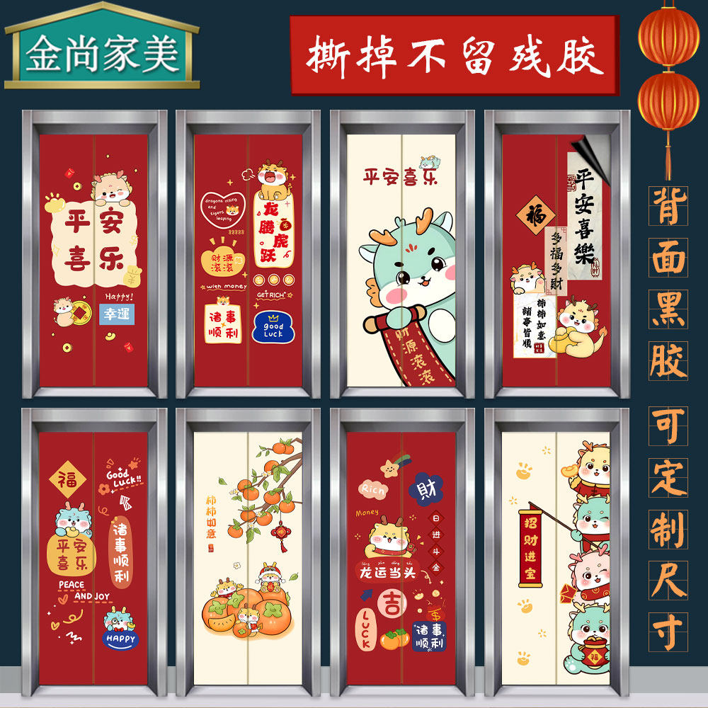 静电门贴新年装饰玻璃贴纸龙年布置2024春节过年窗贴春联窗花对联