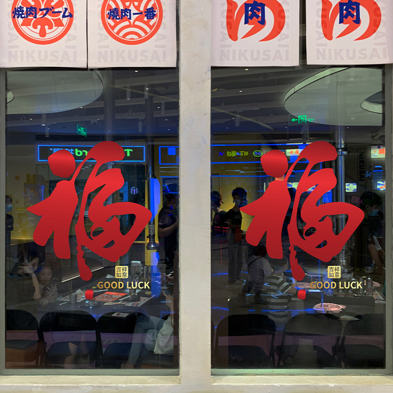 龙年福字推拉门贴窗户玻璃贴纸店铺春节过年新年装饰贴画布置窗花