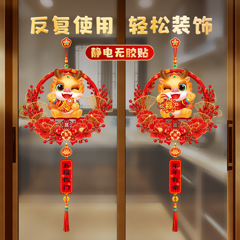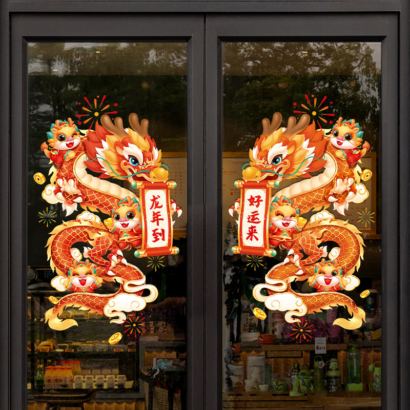龙年静电门贴画春节过年2024新款新年装饰窗贴玻璃贴纸装饰窗花