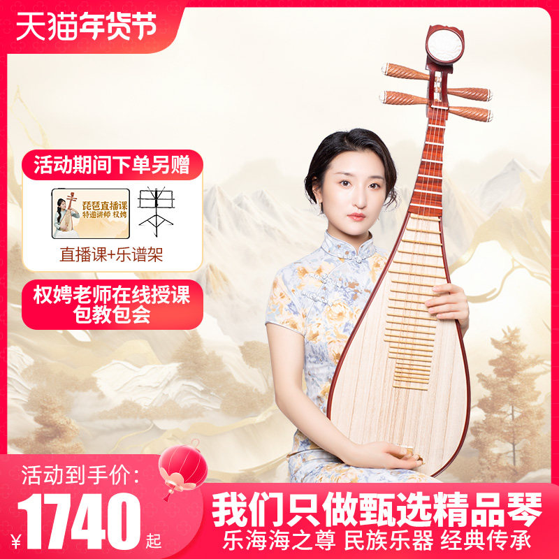 乐海 琵琶乐器初学者入门非洲紫檀木材质原木色多款图案名师选琴