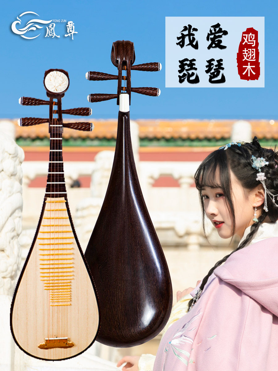 鸡翅木琵琶乐器成人凤尾贝雕做旧纯手工抛光初学入门练习演奏琴鸡