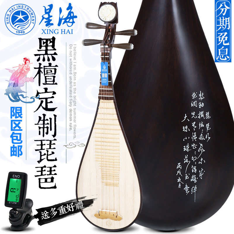 北京星海琵琶乐器初学者牡丹头儿童考级专用黑檀木专业琵笆成人