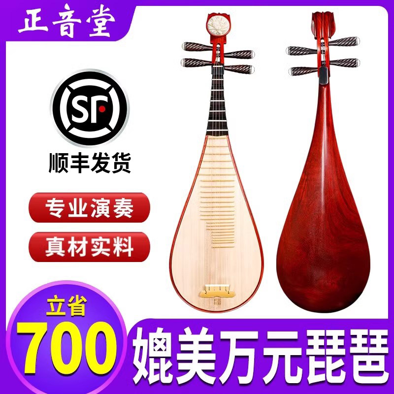 l琶包邮专业红木琵琶梨木抛光花琵民木族乐器非洲红成人琵琶赠配