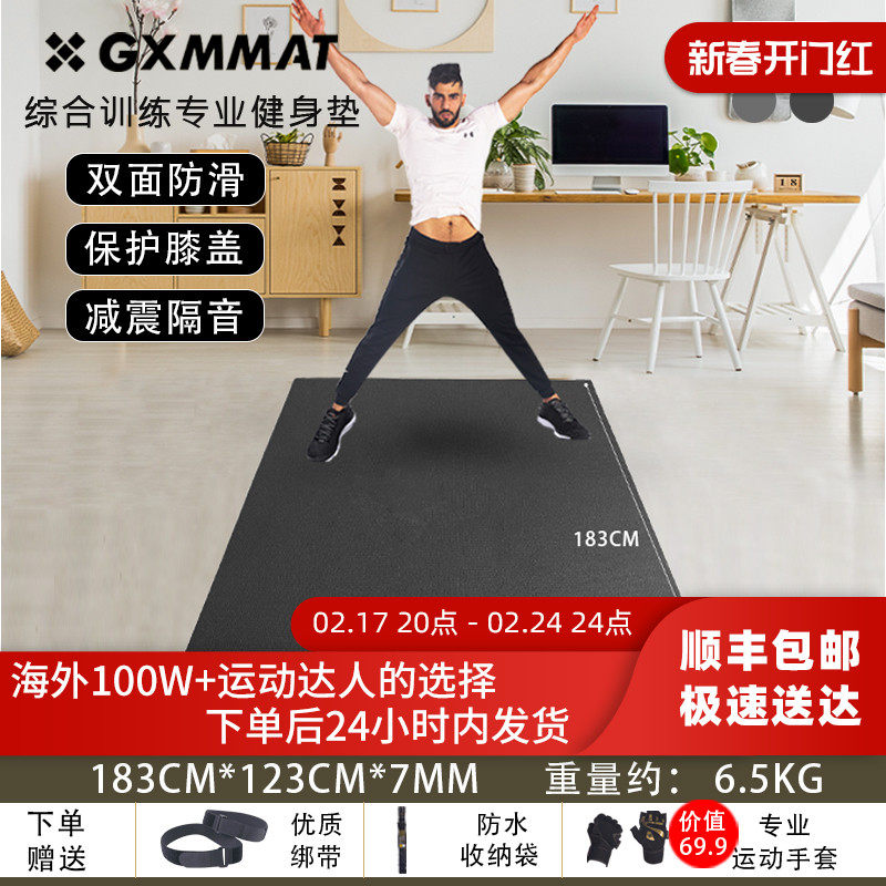 【183*61cm】GXMMAT大男士健身垫瑜伽跳绳减震垫腹轮机防滑隔音垫