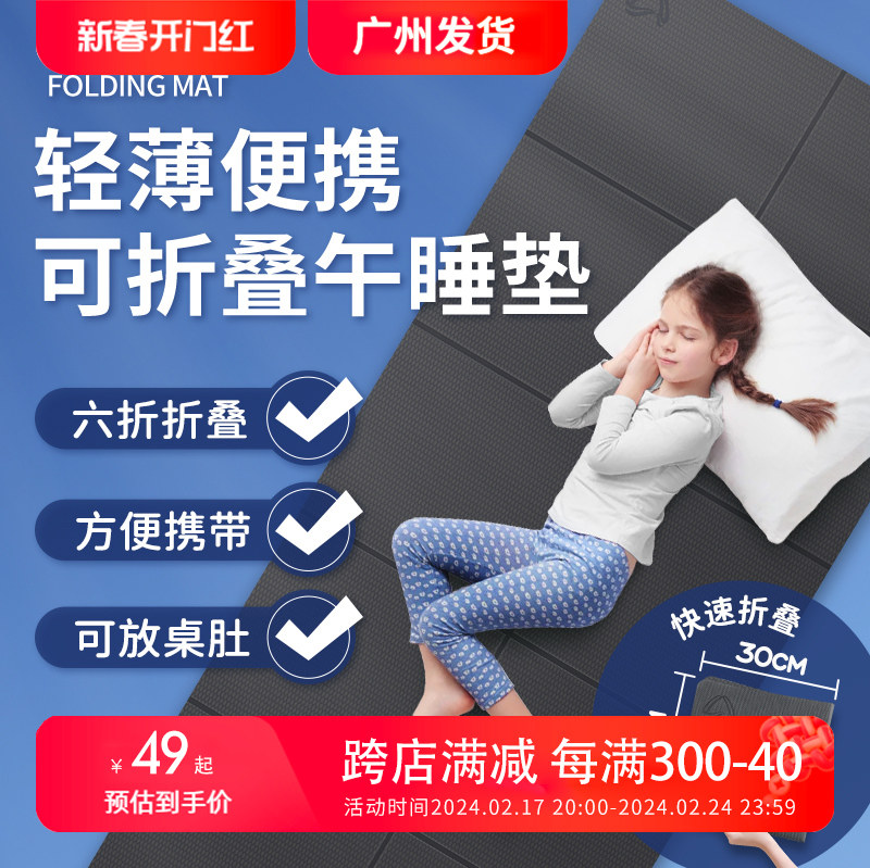李宁可折叠瑜伽垫小学生教室午休旅行便携办公室午睡地垫小健身垫
