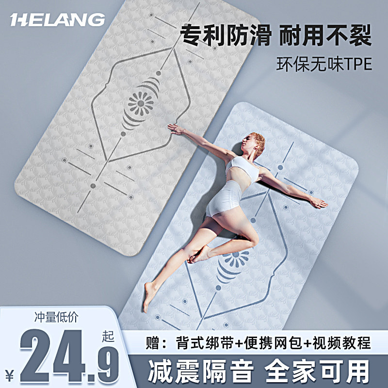 瑜伽垫健身垫家用防滑加厚地垫女士专用跳绳减震静音加长运动垫子