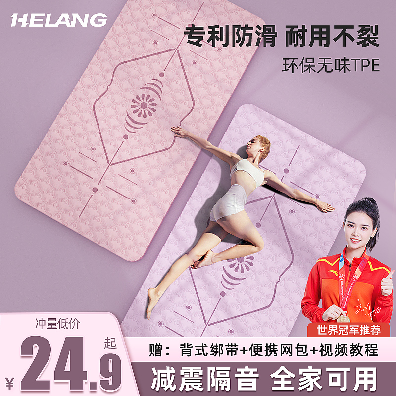 李宁瑜伽垫健身垫家用加厚防滑跳绳垫女生专用减震垫隔音tpe地垫