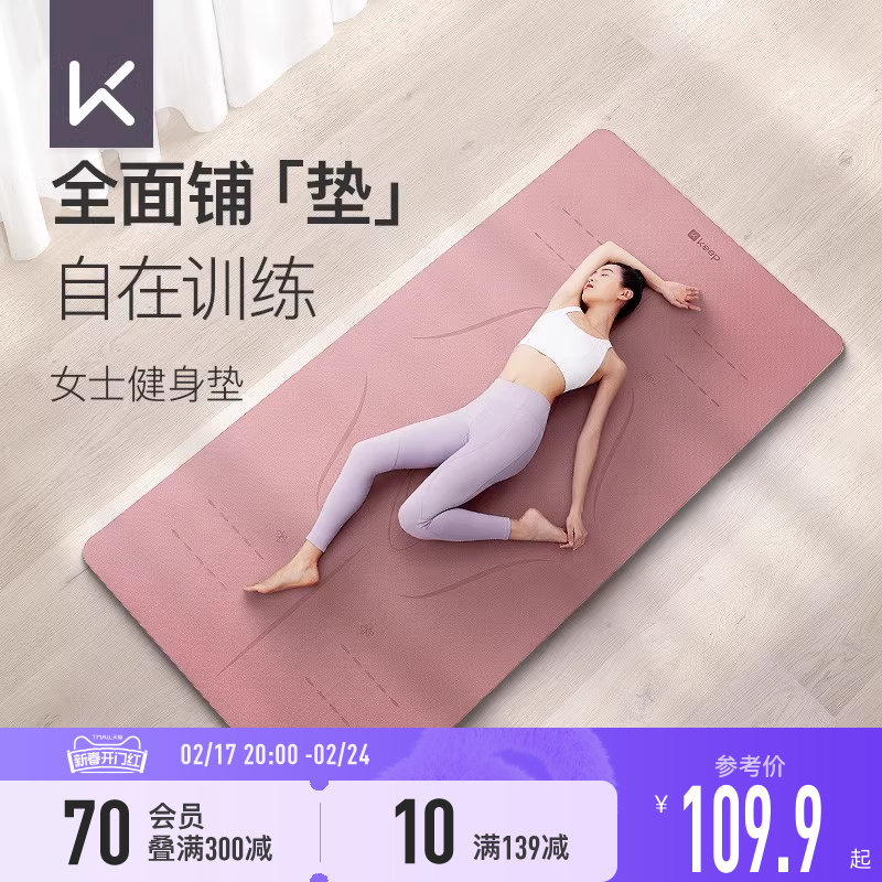 Keep女生专用加宽瑜伽垫家用防滑加厚加宽跳操隔音垫防震静音地垫