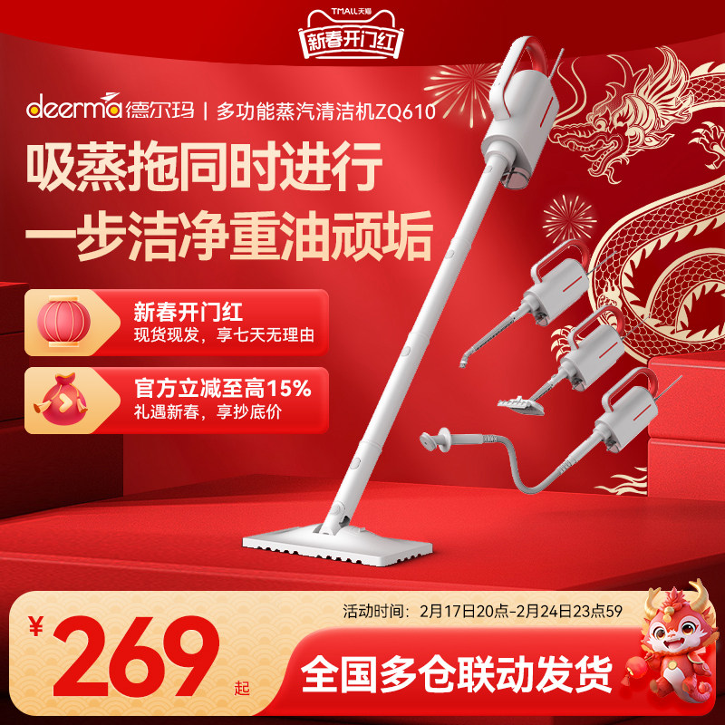 德尔玛蒸汽拖把家用高温清洁机电动手持式拖地洗地擦地神器非无线
