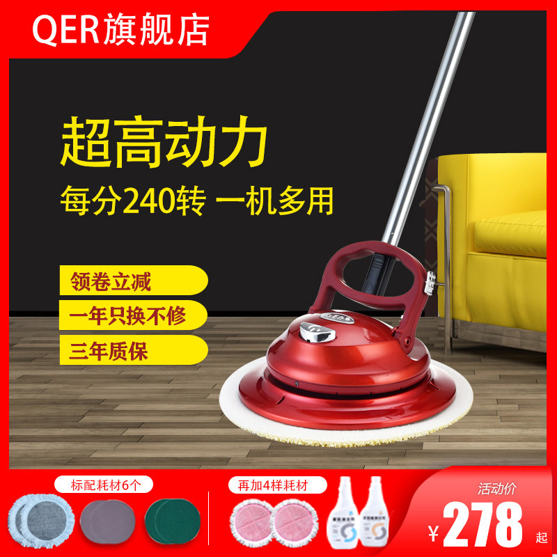 QER自动清洁机家用无线拖把电动清洗机擦地板砖玻璃屋顶打蜡神器