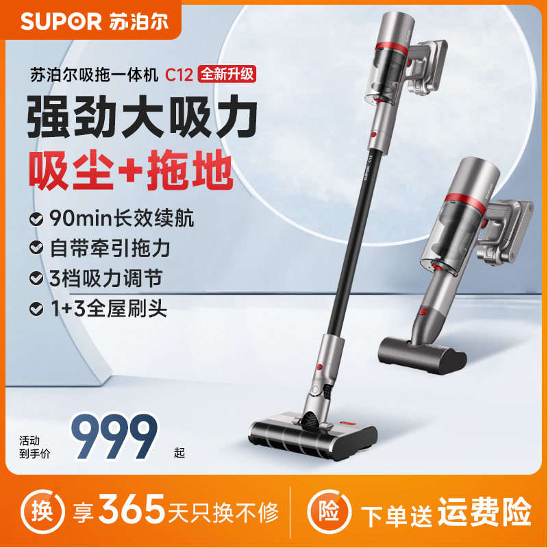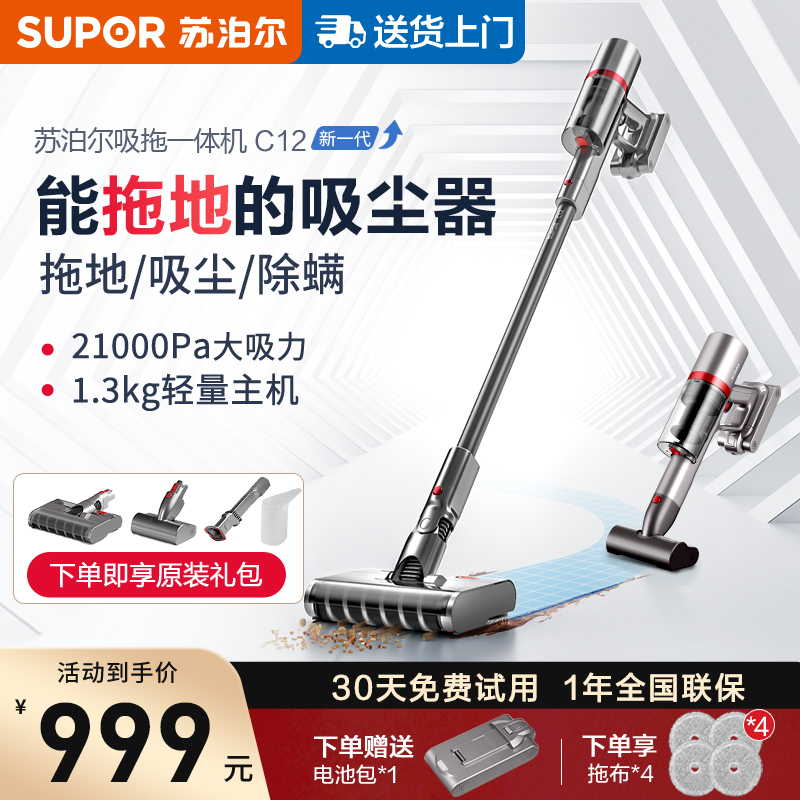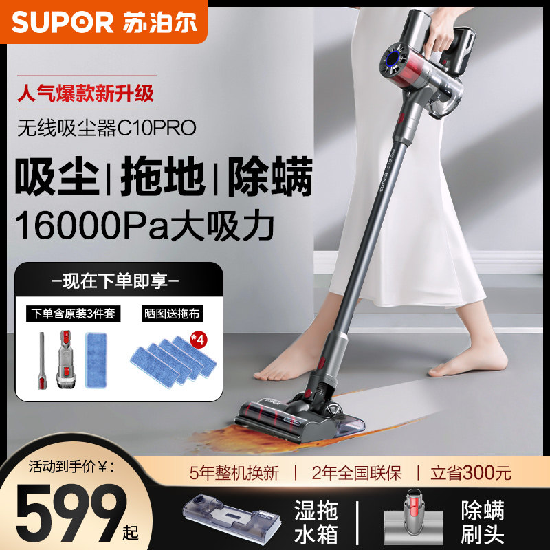 苏泊尔吸尘器家用扫拖吸三合一拖把自动拖地机电动扫地一体机C10P