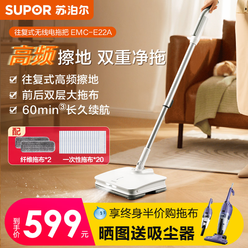 苏泊尔电动拖把扫地拖地一体机全自动手持家用无线拖地机擦地神器