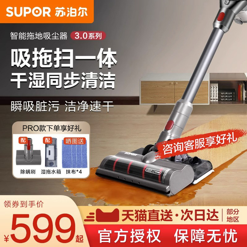 苏泊尔吸尘器家用扫拖吸三合一拖把自动拖地机电动拖把扫地一体机