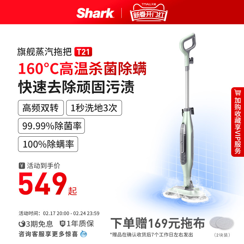 【立即抢购】Shark鲨客电动蒸汽洗地机蒸汽拖把家用高温杀菌T21