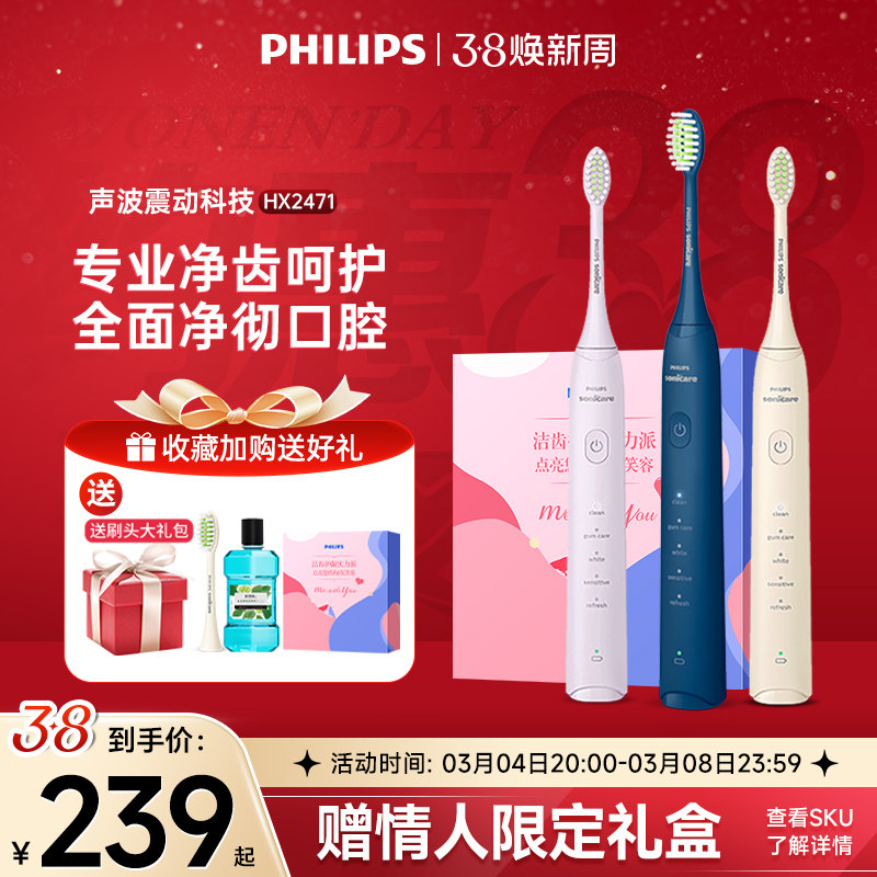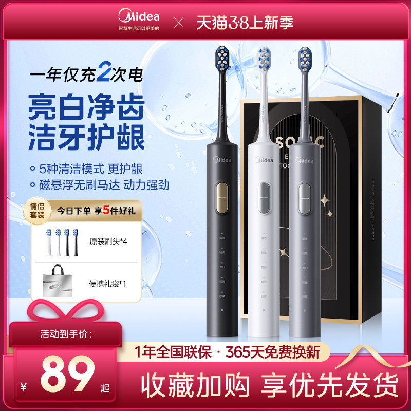 美的电动牙刷成人智能家用男款女士声波充电式全自动软毛情侣套装