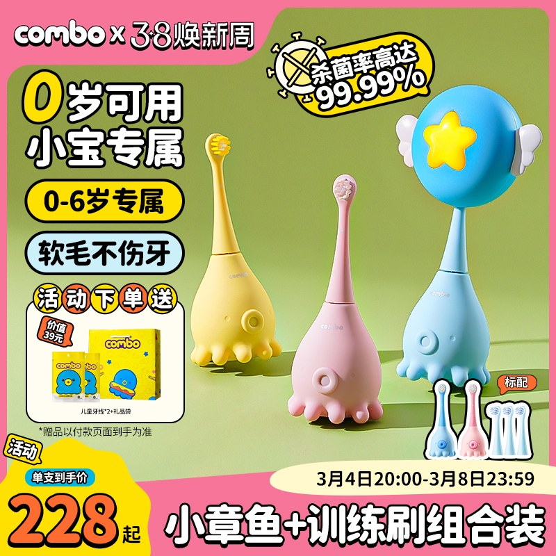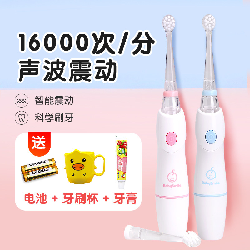 BabySmile婴幼儿童电动牙刷组合0岁软刷头不伤牙龈3-12岁硬刷头