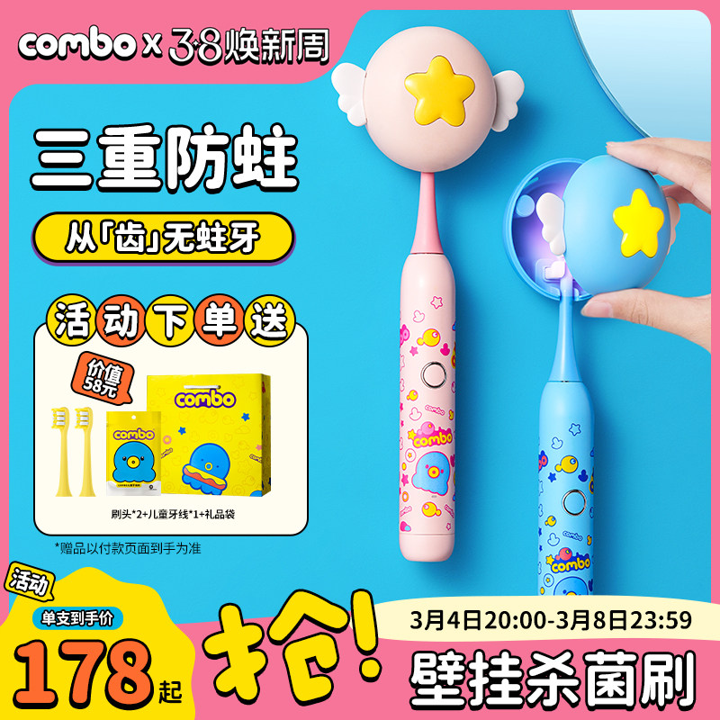 combo儿童电动牙刷消毒小孩充电自动声波3-5岁以上13岁宝宝彩绘款