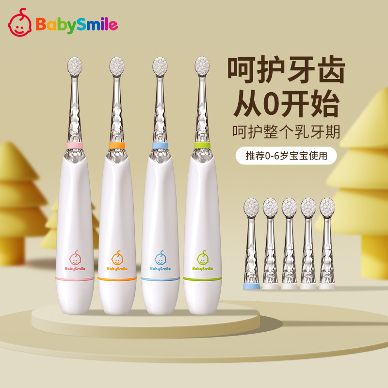 BabySmile婴幼儿宝宝电动牙刷0岁软刷3岁硬刷头不伤牙龈4支刷头