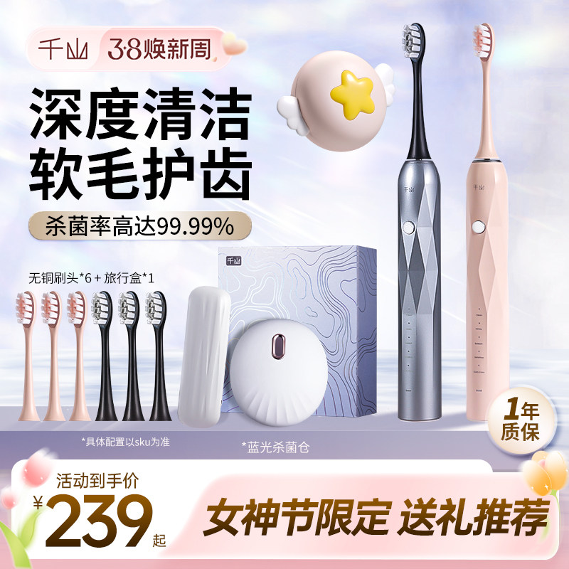 千山电动牙刷男女成人充电声波全自动软毛情侣款智能礼盒钻石x1