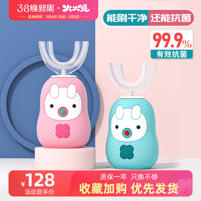 爱贝迪拉儿童牙刷U形电动U型宝宝2-3-4-6岁以上小孩刷牙洁牙神器