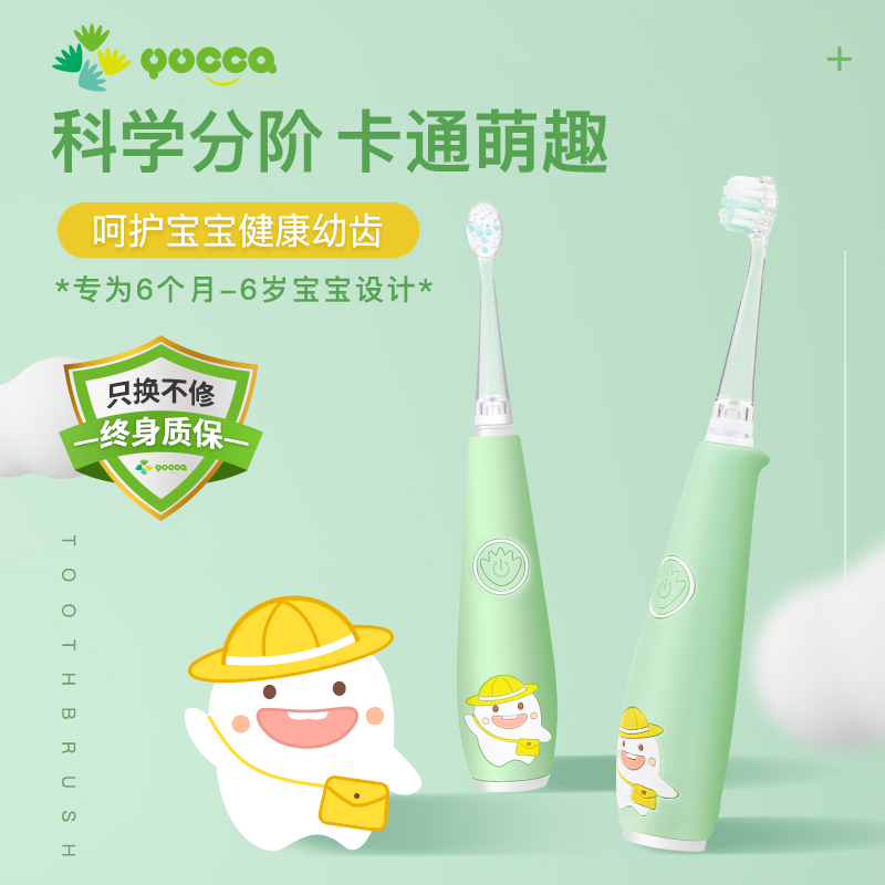 yucca儿童电动牙刷6个月+ 日本制刷头便携式牙刷婴幼儿软毛牙刷