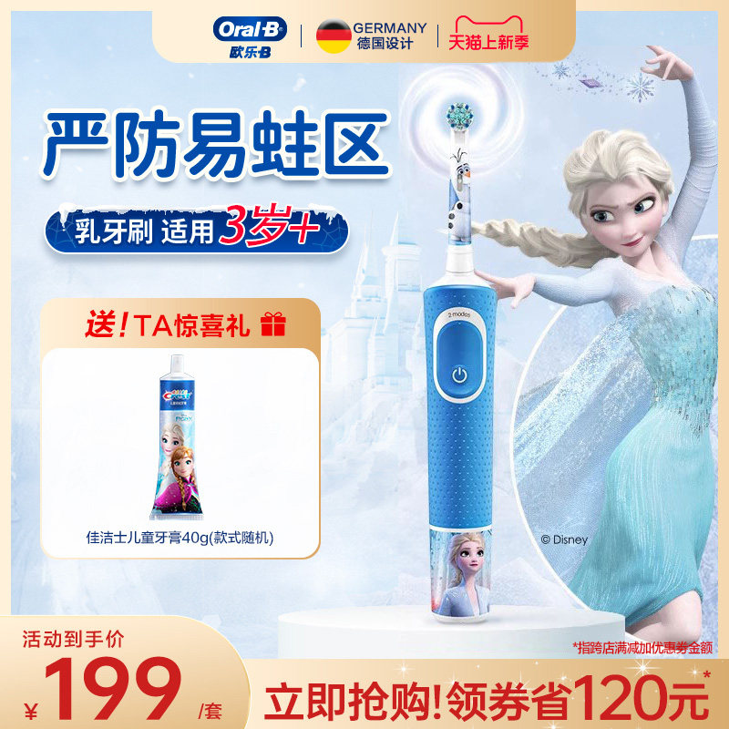 博朗OralB/欧乐B儿童电动牙刷d12全自动冰雪奇缘D100软毛旋转牙刷