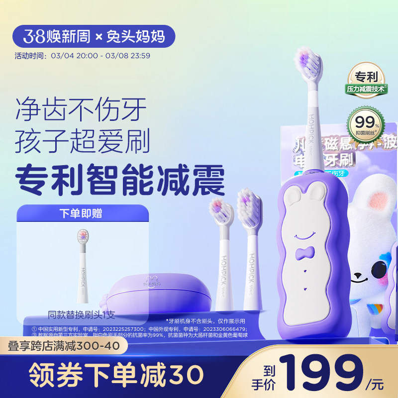 兔头妈妈磁悬浮电动牙刷专用软毛刷头声波3-6-12岁儿童电动牙刷
