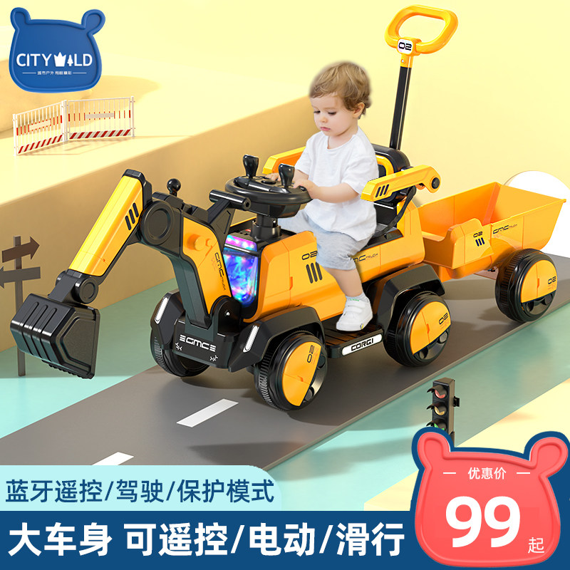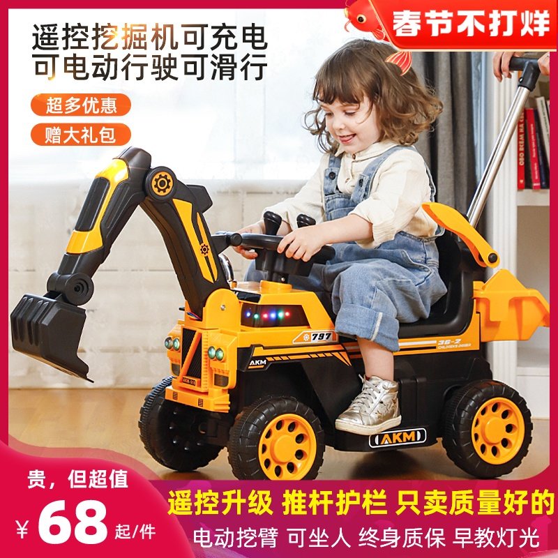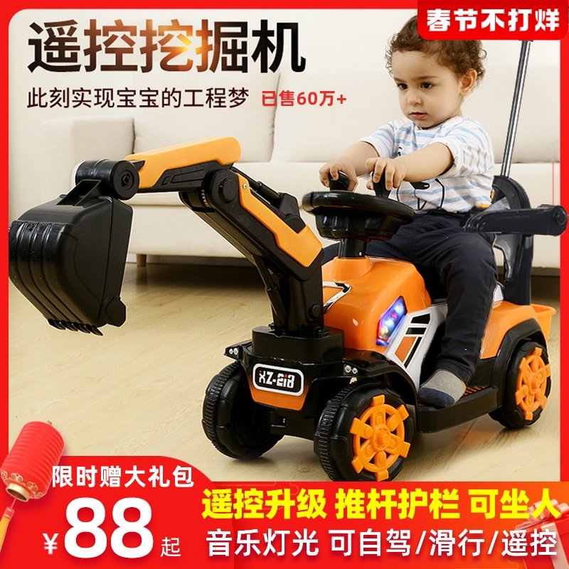 挖掘机玩具车儿童可坐工程车电动遥控女男孩玩具挖土机勾机可坐人