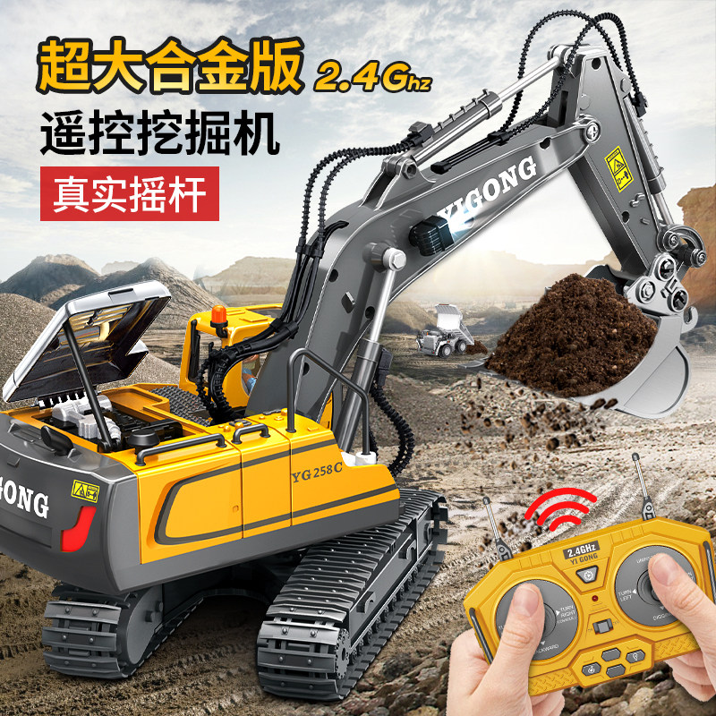 大号合金儿童遥控挖掘机玩具车男孩仿真电动挖土机汽车工程车挖机