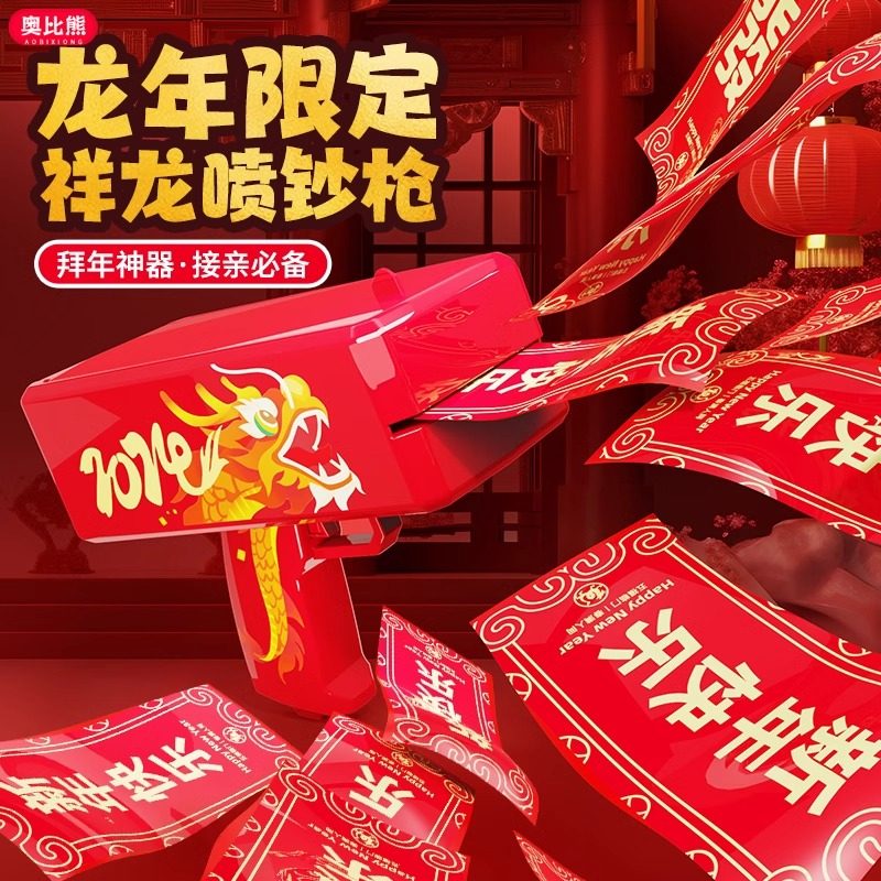2024龙年电动喷钱枪连发喷射钞票囍新年礼物过年红包枪男女孩玩具