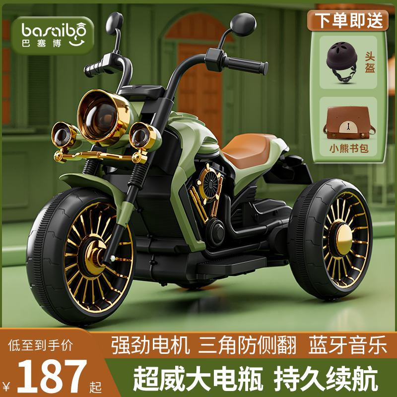 迈多米儿童电动摩托车三轮车可坐人男女宝宝遥控电瓶车小孩玩具车