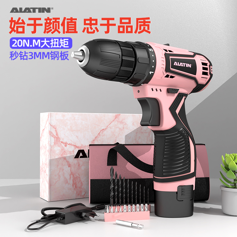 麦工粉色电钻手枪钻枪钻迷你电动螺丝刀手电钻无级变速颜值家用
