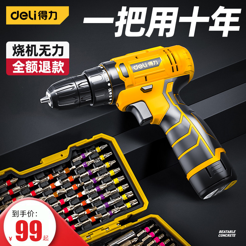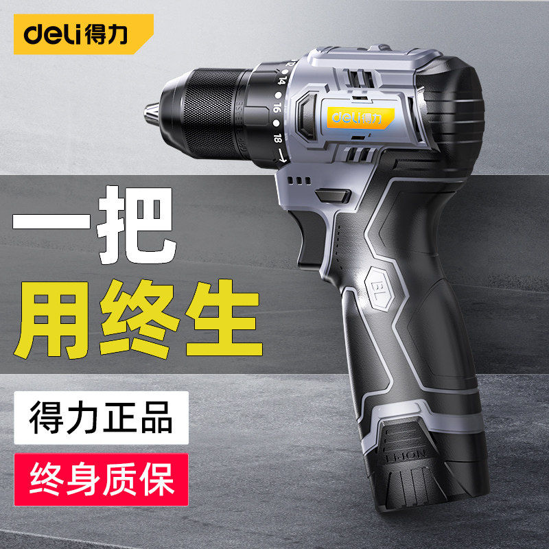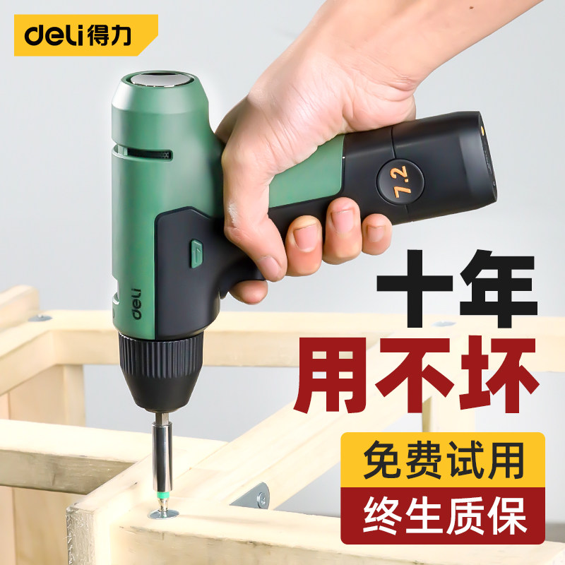 得力电钻手枪钻锂电池无刷电动螺丝刀电转家用手钻打孔手转钻工具
