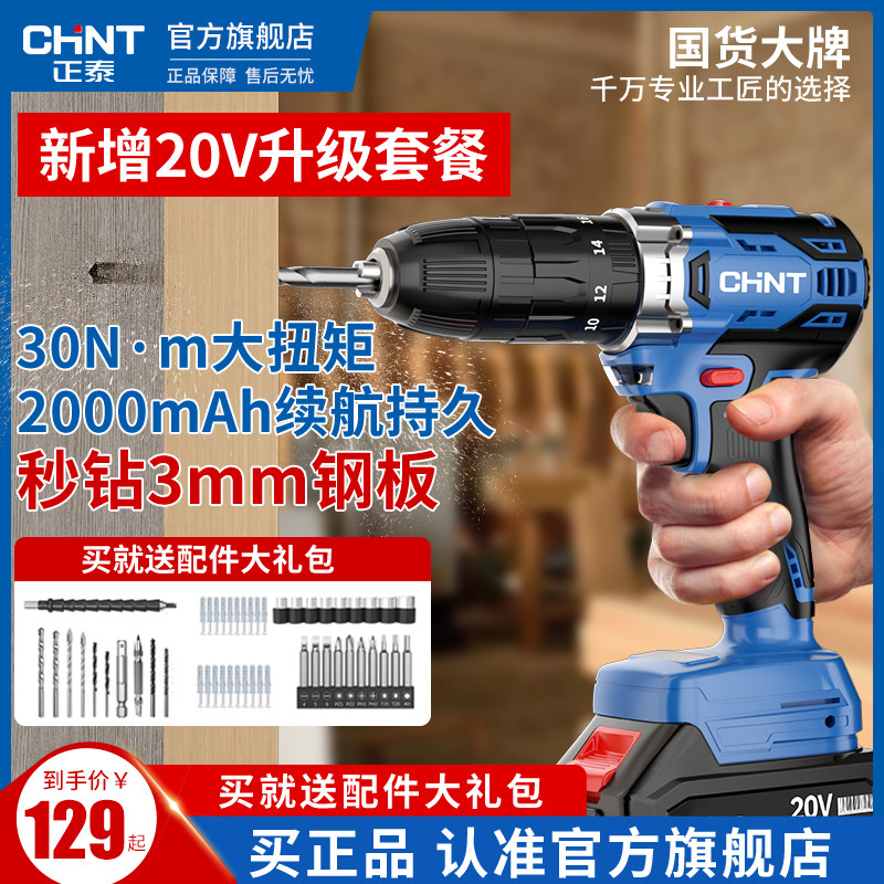 正泰电钻电动螺丝刀家用冲击钻手枪钻无刷锂电钻充电手电动钻电转