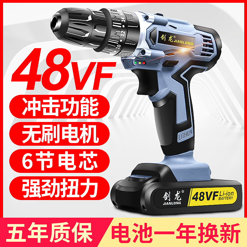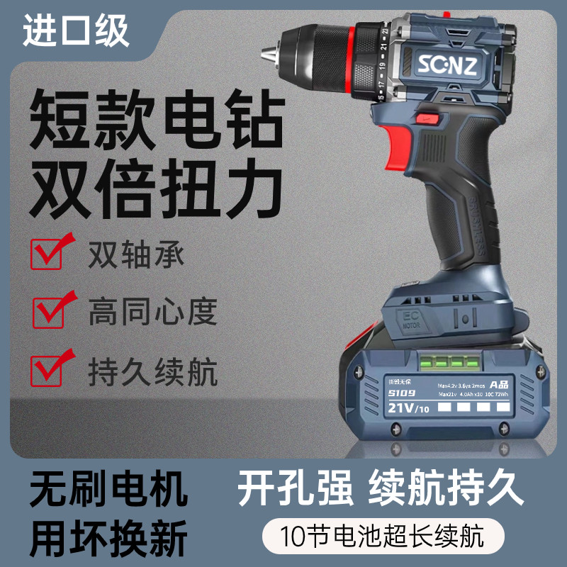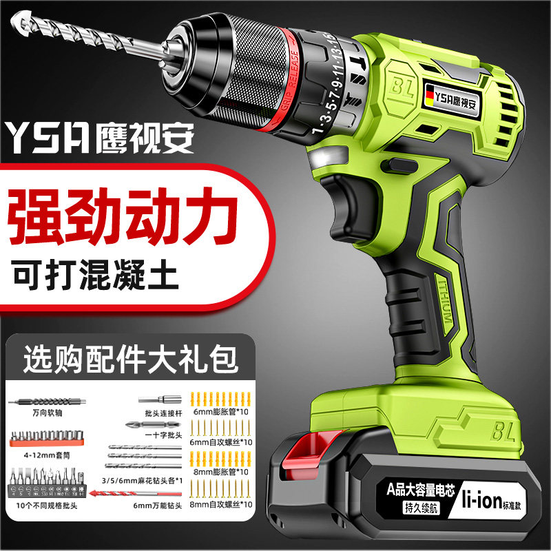 无刷手电钻家用多功能冲击手枪钻充电式手电转钻锂电动螺丝刀工具