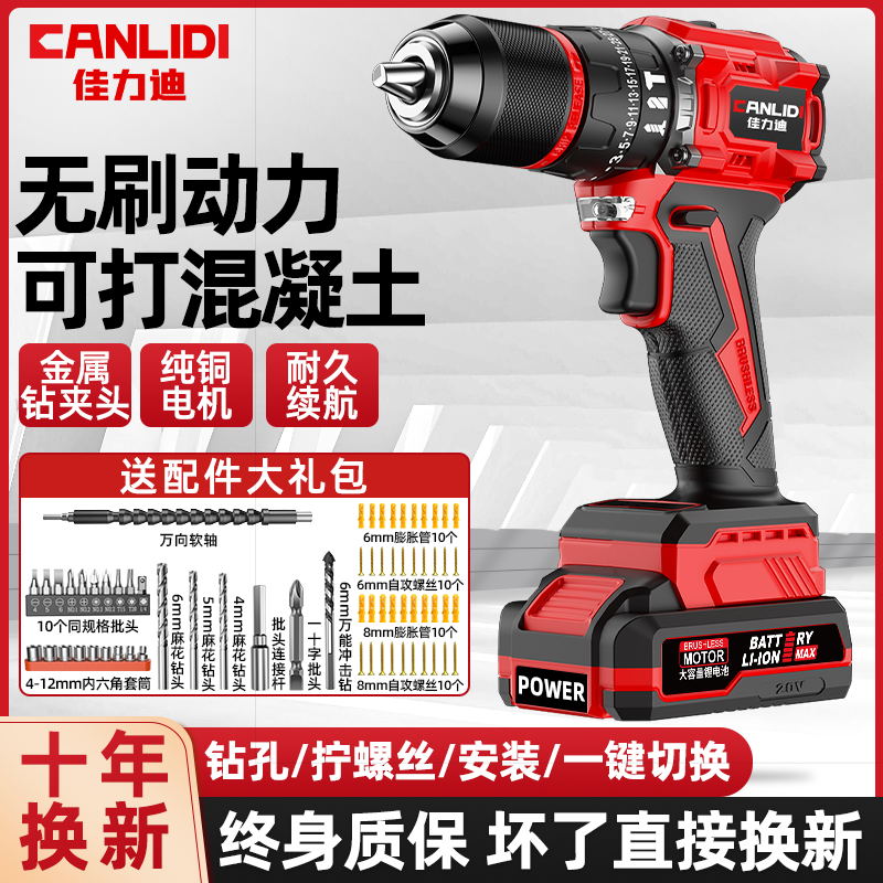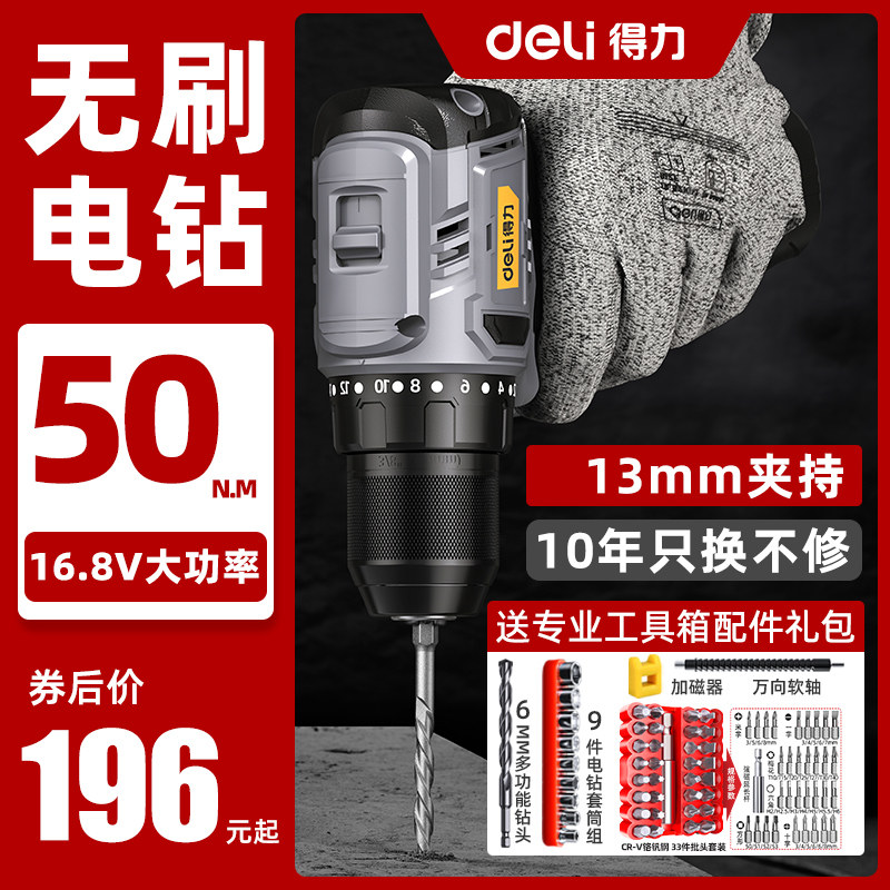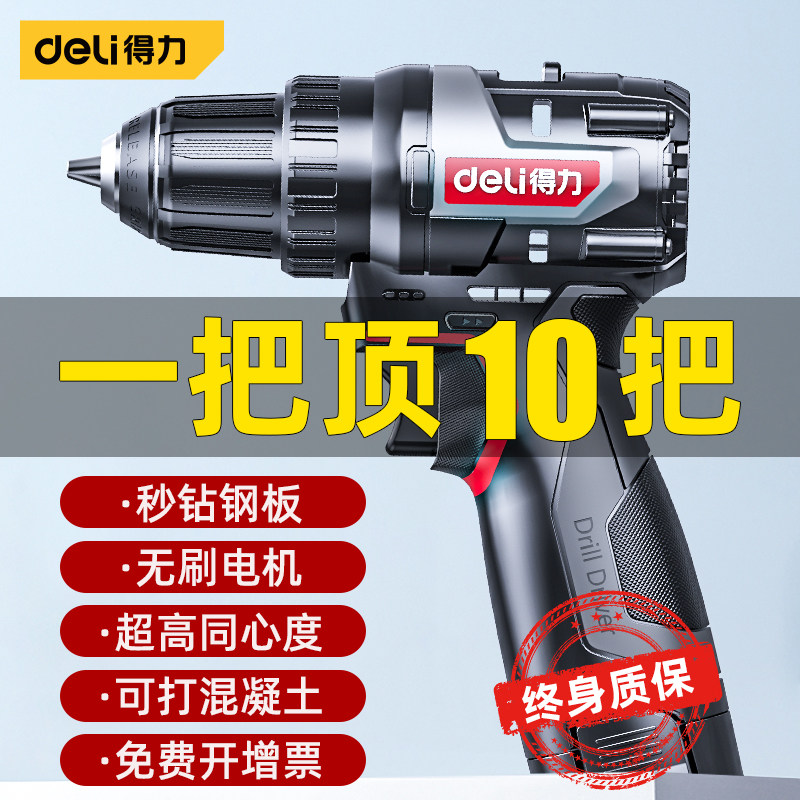 得力无刷锂电手钻充电式电钻电动螺丝刀家用冲击手电转工具小钢炮